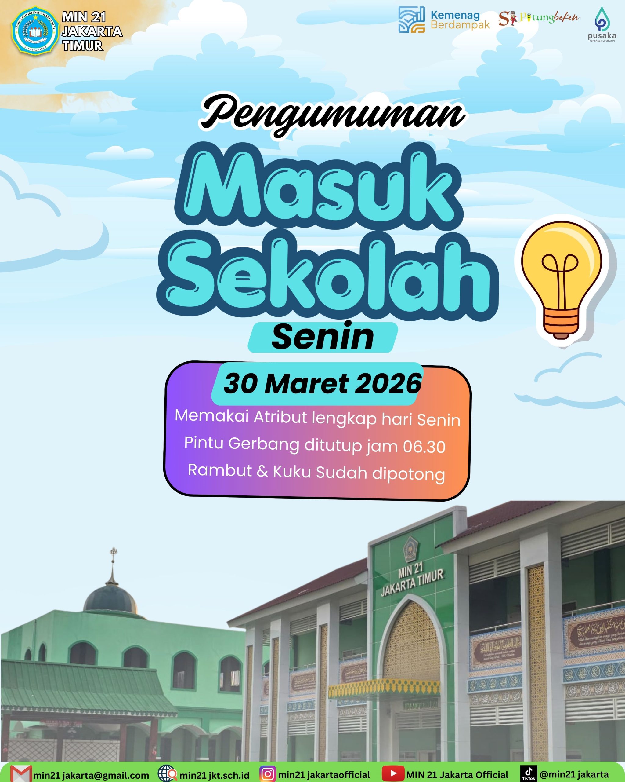 Masuk dan mulai kembali pembelajaran di madrasah pada tanggal 30 Maret 2026