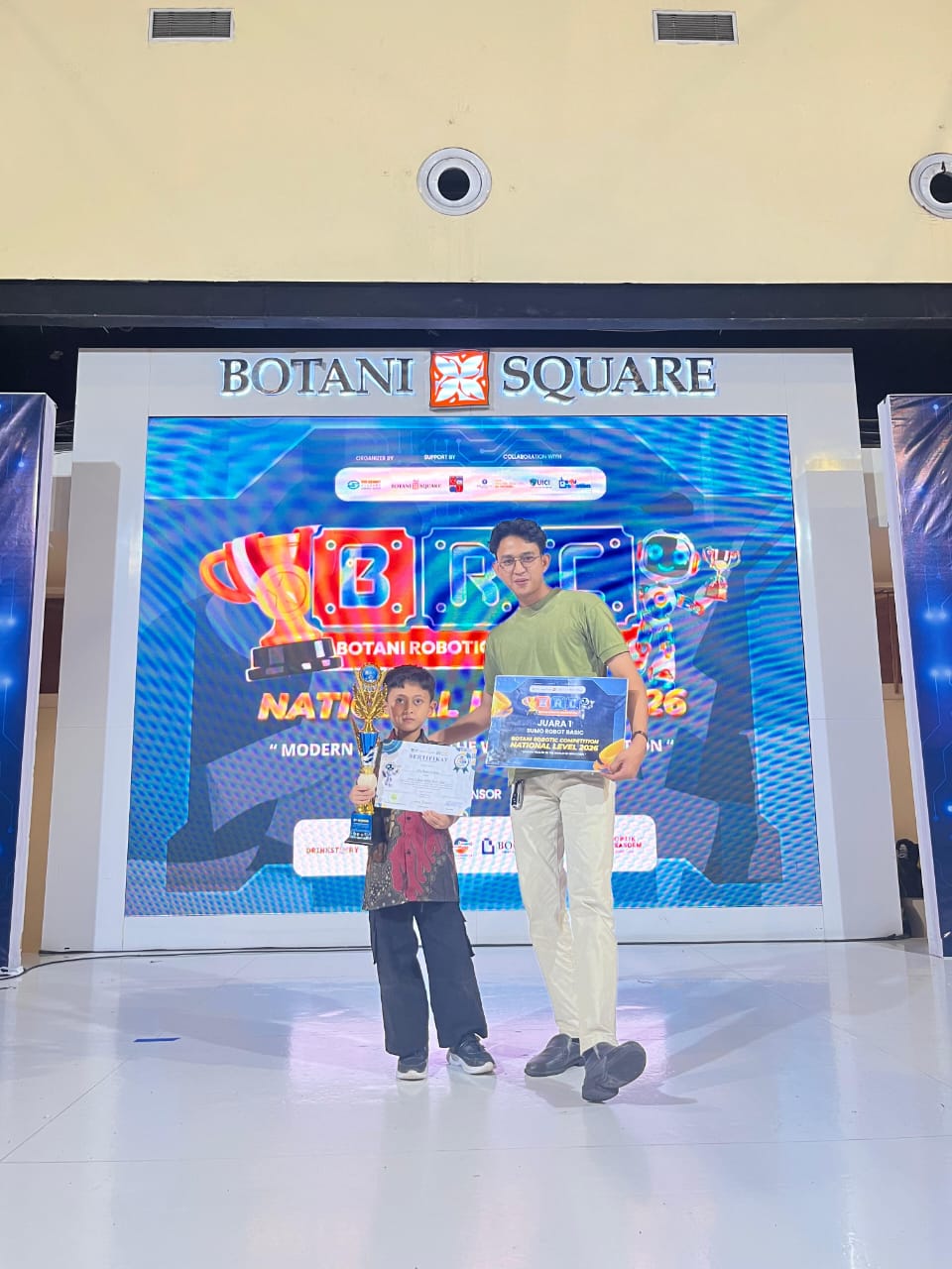 Botani Robotic Competition 2026 adminApril 23, 2026 Juara 1 Sumo Robotic Basic Botani Robotic Competition National Level 2026 Afiq Bagus Wijaya Kelas 3 A Facebook Twitter WhatsApp Pinterest