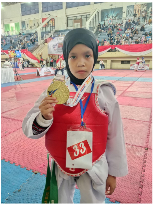 AZKIA EKWINAFEEZA Juara 1 Student Taekwondo Indonesian Championship (STIC) Kategori Kyuorugi Female Tingkat Nasional dilaksanakan pada 14-15 Desember 2024